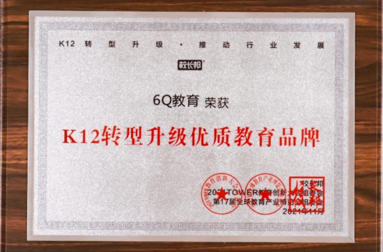 6Q教育品牌荣获2021TOWER教育创新⼤会-“K12转型…