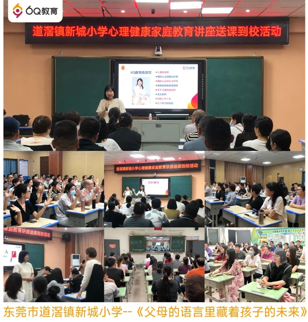 为了进一步培养未来领袖,实现更多家庭和谐幸福,6Q教育讲座面向家校共育方向迈进,深入全国各地学校为家长们和教育工作者们讲授家庭教育知识。2023年1月1日到12月5日,已累计面向学校开展87场讲座。2023年10月-11月,6Q教育来到了东莞市道滘镇,在5家幼儿园、4家小学、1家中学开展了10场家校专题教育讲座。