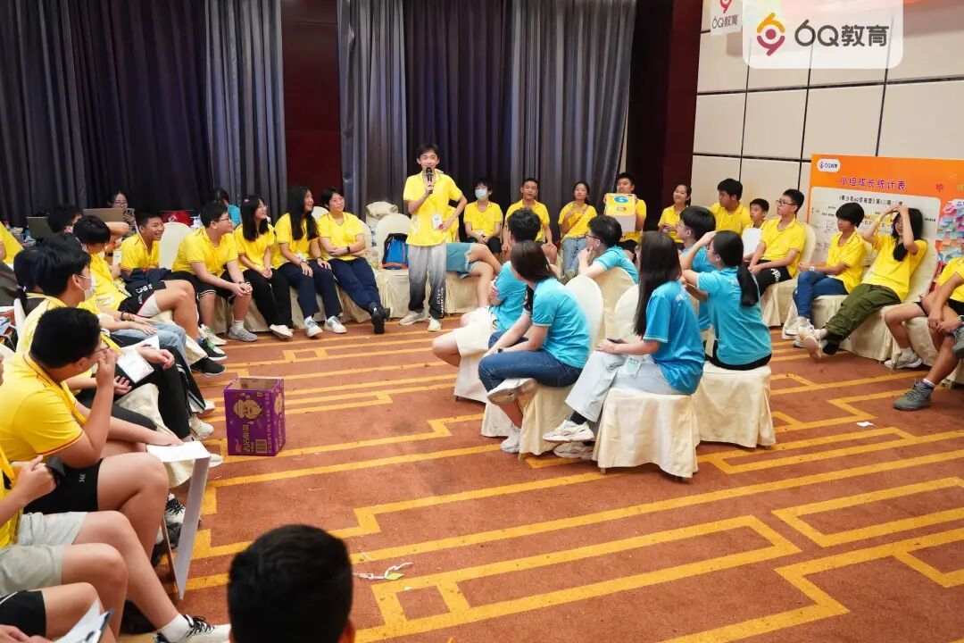 早在1922年,时任哈佛大学校长的查尔斯·艾略特曾这样说道:“营地教育让学生以全社会的角度来考虑问题,在一次次尝试中获得最终的成功。营地教育和学校教育加在一起,让我们的教育体系变得更加完整。”截至2023年9月,《青少年6Q领袖营》已成功举办了468期,被越来越多的家长熟知,受到了众多学员的喜爱,助力了上万名青少年的成长。领袖营的导师及工作人员一直秉持着爱、自由、民主、尊重、平等、三赢的理念与孩子相处,还有6大特色助力孩子成长,8大服务保障孩子和谐发展。领袖营注重培养学员的6Q和谐发展,即(SQ灵性商数、IQ智力商数、EQ情商商数、CQ创造力商数、AQ逆境商数、RQ资源管理商数),提高注意力、观察力、想象力、记忆力等智力因素,培养情感、意志、兴趣、性格、动机等非智力因素的成长,提升六大商数激活“动力系统”(为什么学习)和“操作系统”(怎么学习)这两大学习系统。在领袖营里,学员将通过六天六夜在6个Q营里的封闭式学习、训练、分享、互动、体验和感悟,协助他们从“认识自我、完善自我”的目标迈进。<svg viewBox="0 0 1 1" style="float:left;line-height:0;width:0;vertical-align:top;"></svg>如果把青少年的身心灵得到滋养与发展比做成一棵生机勃勃的苹果树,那么《青少年6Q领袖营》里的6个Q营就是其中的6个树干,分别代表学员在营里学习的主题:SQ(爱与感恩)、IQ(领导与智慧)、EQ(情感与合作)、AQ(愿景与意志)、CQ(创意与创作)、RQ(口才与理财)。当学员的“身心灵”被不断注入营养,德(SQ)智(IQ)体(AQ)美(CQ)劳(RQ)情(EQ)六个Q不断发展时,才能收获累累硕果。图2 总导师6Q刘中良参与第429期《青少年6Q领袖营》CQ班授课假期,让孩子参加6Q领袖营,亲身体验其中的6大特色,8大服务。经过近20年的发展与实践,我们总结了《青少年6Q领袖营》以下这6大特色:第一,户外拓展中突破。《青少年6Q领袖营》以拓展项目为载体,训练孩子的内在信念和自我突破,提升自信心;训练孩子遇到困难不畏惧不退缩,勇敢挑战难题的气魄;从拓展训练中感悟,进步与成长。在领袖营的6个Q营里,学员可以自主选择在任一个Q营培训,比如在主题为“爱与感恩”的SQ营,他们可以参加《盲人与哑巴》、《我有犯错的权力》等活动,学会感受爱与传递爱,培养孩子善于感恩、接纳包容、扩充胸怀、智慧诚信等品质;在主题为“情感与合作”的EQ营参加《抢渡硫酸河》、《铁人六项》、《珠行万里》等活动,提升自己情感智慧,学会管理自己的情绪;在主题为“愿景与意志”的AQ营里参加《定向越野》、《毕业墙》、《突出重围》、《毕业绳》等活动,锻炼学员的忍耐自控力,建立“坚持到底,直到成功”的坚强信念。第二,封闭训练模式。在《青少年6Q领袖营》里,学员通过6天6夜封闭式训练,能够全身心学习6Q智慧。同时,安保医务人员配备齐全,保障孩子训练、住宿安全,让孩子独立自主,减少依赖,放松下来全身心投入训练中,在安全、富有创造性的环境中学习如何欣赏他人,如何合作与分享,尽情享受每一场活动,每一个环节,每一次分享,让其“身心灵”全方位得到洗礼。第三,丰富的教学经验。导师作为领袖营质量的重要决定因素之一,其教学质量、个人魅力都会对学员的体验产生重要的影响。《青少年6Q领袖营》创办近20年,不但积累了大批优秀学员,也培养了众多优秀导师,他们擅长讲授心理咨询、潜能开发、亲子沟通、家庭关系等课程。领袖营里的导师多为教学严谨的资深心理学导师,能够结合多年经验,针对不同的Q营,不断研发出丰富有趣的课程内容、创新的教学⽅式。与其他营地教育不同的是,领袖营的导师及工作人员一直秉持着爱、自由、民主、尊重、平等、三赢的原则与孩子相处,当学员有情绪困扰时,他们会多聆听孩子的表达,协助孩子更好面对情绪,掌控情绪,做情绪的主人。同时,多点发现、多点欣赏孩子的闪光点,多给孩子成长的时间和空间,在这样的环境下,孩子的生命力得到滋养,成长的动力更强。第四,益智游戏挖掘潜能。《青少年6Q领袖营》,以益智规则游戏开发右脑,在紧张氛围中开启逆向思维模式,让孩子在未来遇到问题时,能冷静思考,破解难题。比如,在主题为“领导与智慧”的IQ营,学员在《激情99》、《罗马炮台》等活动中,以及《MVSWOT分析决策》、《领袖之问》等有利于培养孩子领袖能力的课堂上,提高他们的自信自控能力、逻辑思维能力,做自己生命的主宰者;在主题为“口才与理财”的RQ营,他们参加《资源整合我最行》、《我就是财富》、《理财四账户》、《模拟新闻联播》等活动,提高口才与演讲水平,建立高财商的积极信念,做财富的主人;在主题为“创意与创作”的CQ营里,参加《疯狂大学》、《6Q时装秀》、《创造发明技巧》等活动,培养学员善于观察探索、享受奇思妙想、积极动手实践的能力。第五,家庭式同步成长。如何让“1+1+1>111”,即通过家庭、学校、社会三方协助孩子更好成长?一方面,父母要提升情商智慧,做智慧好父母,学会如何跟孩子沟通,在《高EQ智慧父母》一阶的课堂上,很多父母就学习了“亲子沟通四方格”,在与孩子的沟通中,哪些行为是子女困惑区、亲子冲突区、父母困惑区、亲子和谐区等。另一方面,孩子也要提升综合素养,在《青少年6Q领袖营》里,学员可以在富有创造性的营地活动中,深度探索自己、欣赏自己。这样一来,父